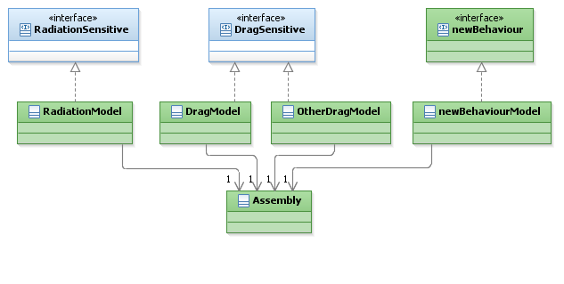 - The assembly contains only information : it does not act as physical models (force computations for the spacecraft,...) and implements no complex algorithm. "Models" objects are used for this purpose.
