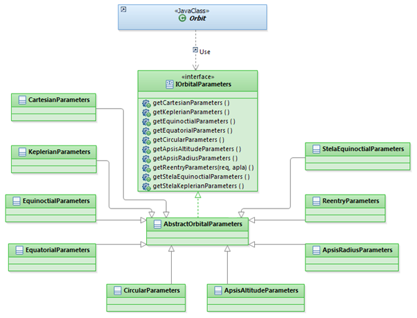All different orbital parameters types extend the abstract class AbstractOrbitalParameters and implement the interface IOrbitalParameters (the following class package may not contain all classes extending AbstractOrbitalParameters class).
