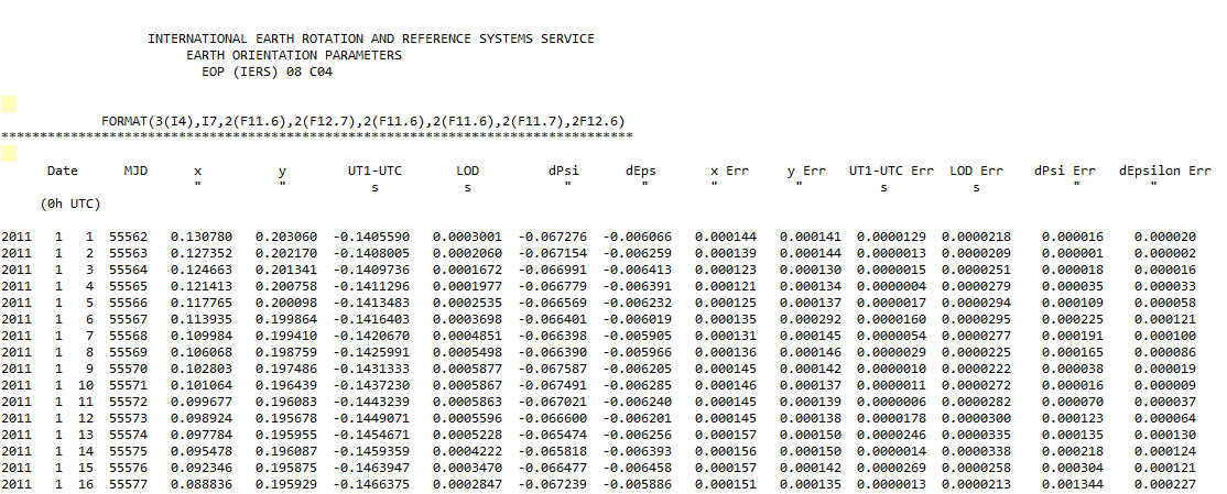 | EOP 05 C04 | [13] | See below | EOP05C04FilesLoader |
