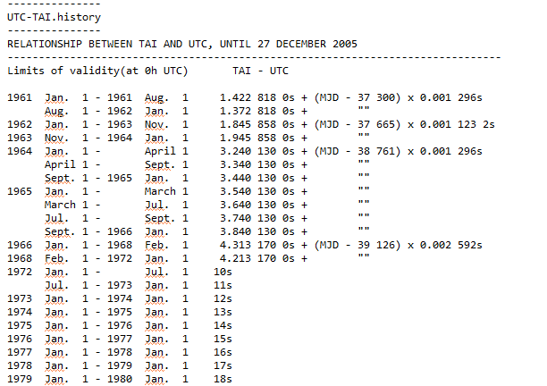 | Gap TAI-UTC | [18] | See below | UTCTAIHistoryFilesLoader |